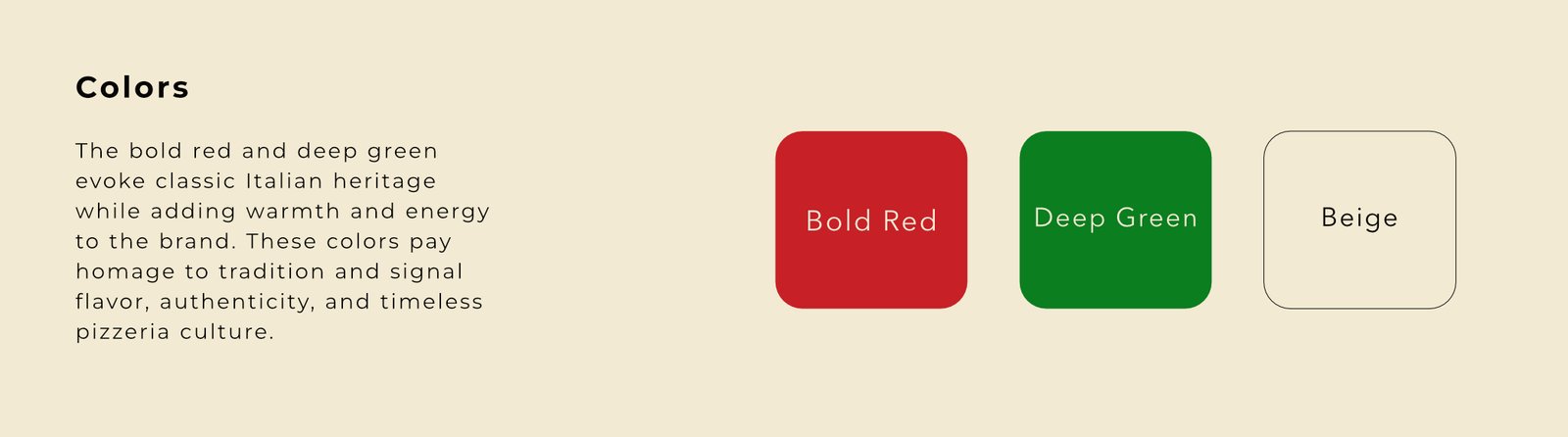 a nostalgic Italian-American vibe.Fonts were selected to bridge eras: Nexa Rust Slab for tradition, Montserrat for a modern, digital-ready look.